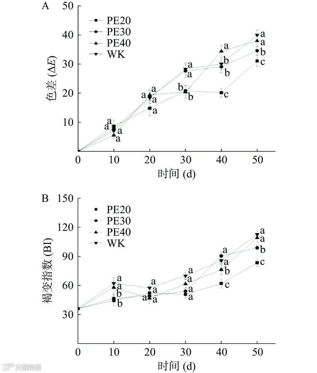 2.1.6 对外观色泽(总色差值(∆E)、褐变指数(BI))的影响