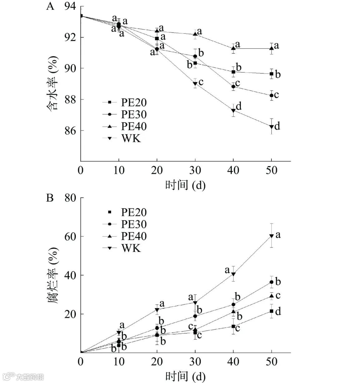 图 2 自发气调包装对方竹鲜笋含水率和腐烂率的影响