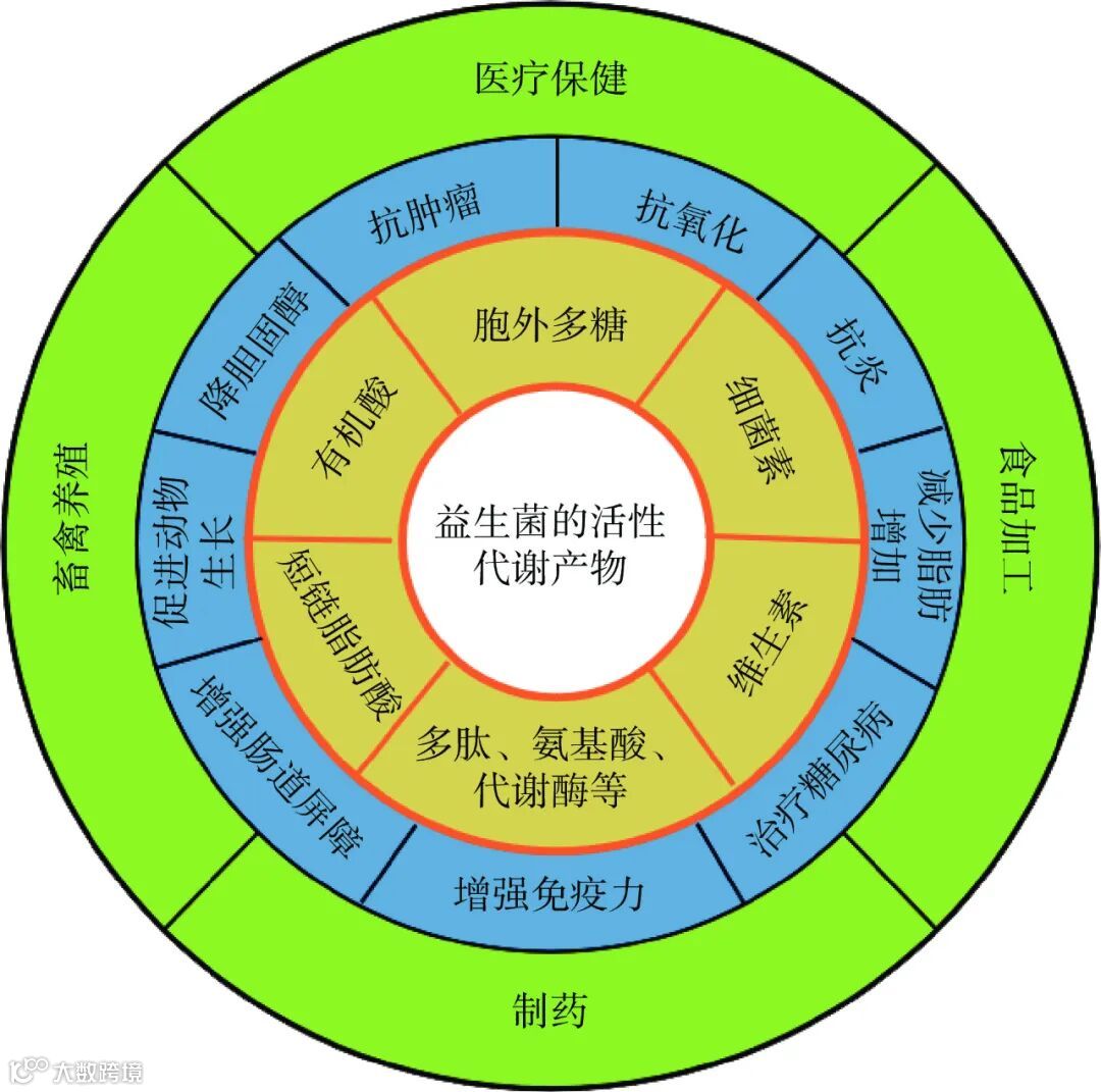 图 1 益生菌活性代谢产物、功能及应用