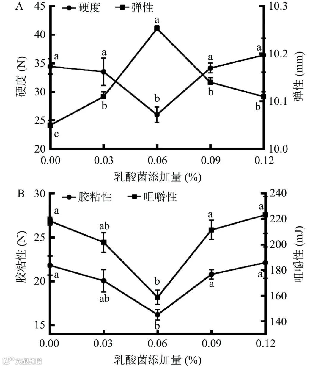 2.3 乳酸菌粉添加量对多谷物杂粮面包质构特性的影响