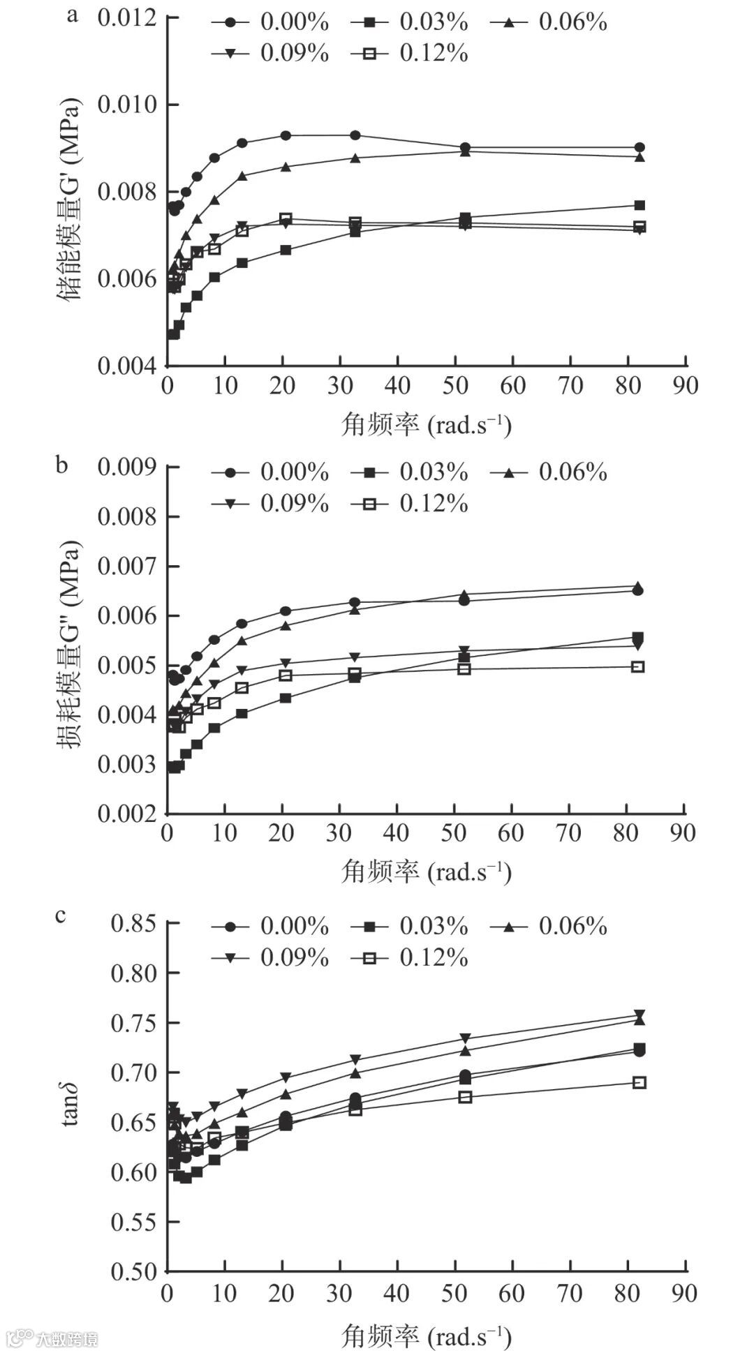 图 3 不同乳酸菌粉添加量下角频率对面团流变特性的影响