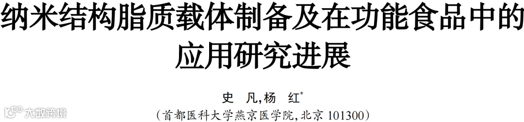 2023年8月,首都医科大学燕京医学院杨红教授课题组在国家综合性科技期刊《食品工业科技》发表题为《纳米结构脂质载体制备及在功能食品中的应用研究进展》的论文。首都医科大学燕京医学院杨红教授为通讯作者,首都医科大学燕京医学院史凡讲师为第一作者。