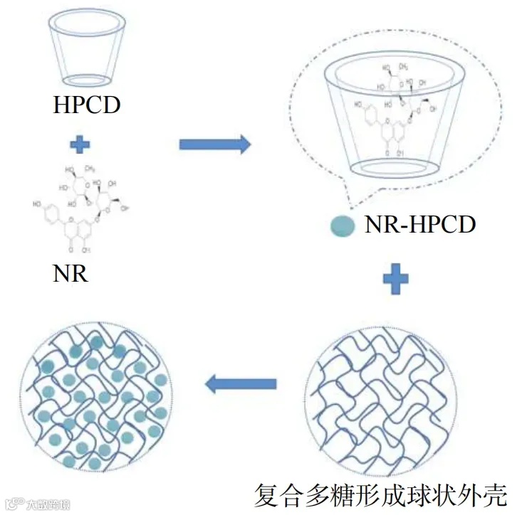 图 1 负载柚皮苷的复合多糖凝胶球形成机制示意图