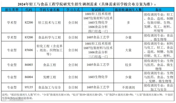 拟接收轻工(造纸、制糖、包装、发酵)、食品、化工、材料、环境等相关专业考生调剂。