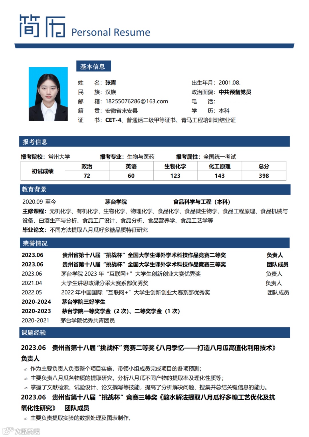 @优质考生简历视频版(二)