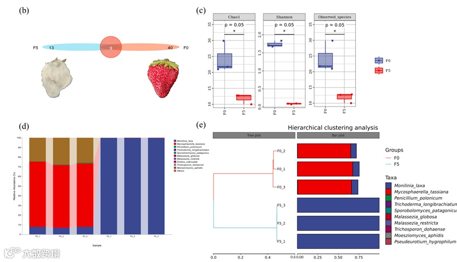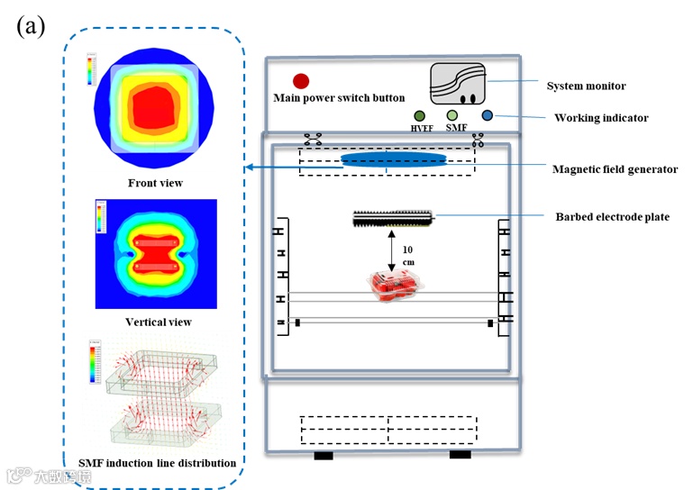 图1.(a)HVEF-SMF设备的示意图;(b-e)草莓物种水平上的真菌群落