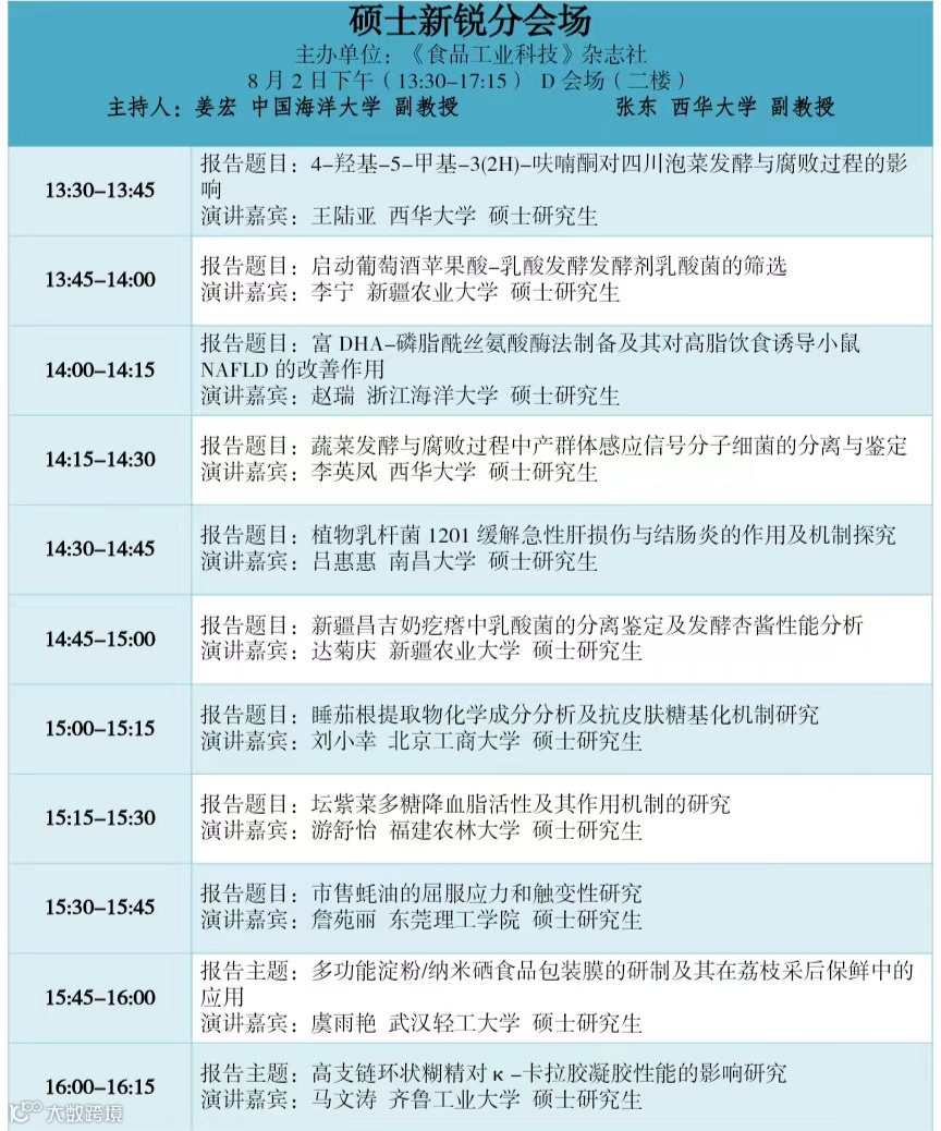 面向研究生及企业研发人员征集食品及相关领域的研究成果的中英文摘要。