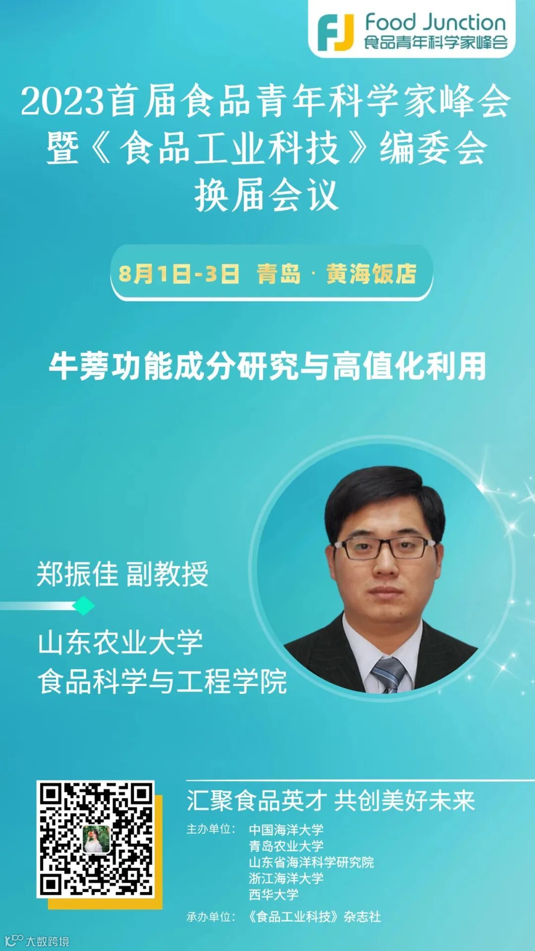郑振佳,工学博士,山东农业大学食品科学与工程学院副教授,硕士生导师,研究方向为果蔬加工、天然产物化学与农业标准化。山东省重点扶持区域引进急需紧缺人才,中国食品科学技术学会青年工作委员会委员,《食品工业科技》青年编委。近五年主持国家重点研发计划子课题、山东省重点扶持区域引进急需紧缺人才项目和山东省自然科学基金等16项;主持阿卡波糖、牛蒡子苷元和大豆苷等6项国家标准的研制;第一位获中国商业联合会科学技术奖二等奖、中国食品工业协会科学技术奖二等奖和烟台市科技进步二等奖等4项。以第一或通讯作者在Comprehensive Reviews in Food Science and Food Safety、Journal of Agricultural and Food Chemistry和Food Chemistry等杂志发表论文60余篇。