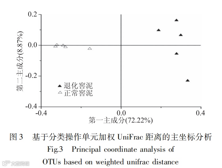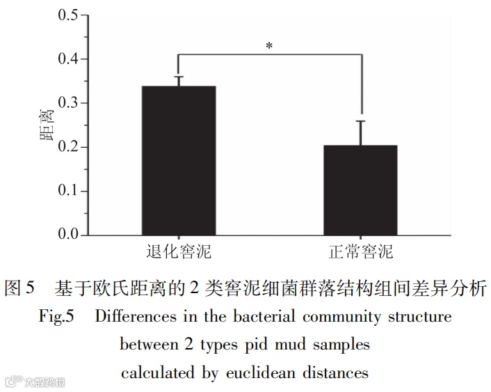 方法:利用高通量测序与生物信息学分析,来研究正常窖泥与退化窖泥的微生物多样性,并进行比较分析。首先,使用土壤DNA提取试剂盒,对窖泥样品的总DNA进行提取;接下来,以之为模板,通过PCR方法,扩增细菌的16S rRNA V3-V4区片段;使用MiSeq PE300 平台,对获得的PCR产物进行高通量测序;测序后,将获得的双末端序列,进行质控后,以去掉低质量序列与接头,然后使用QIIME平台,按照97%的相似度划分分类操作单元(Operational Taxonomic Unit,OTUs),使用RDP(Ribosomal Database Project)数据库在门、纲、目等分类单元上进行注释,以分析窖泥的微生物菌群结构,并基于QIIME内置脚本分析窖泥菌群的α与β多样性。
