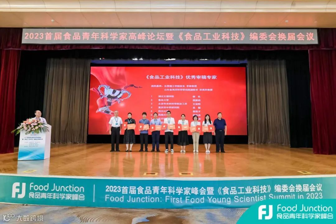 《食品工业科技》主编廖小军教授、西华大学副校长郎方年教授为《食品工业科技》第七届编委代表颁发了聘书。《食品工业科技》总编张铁鹰编审、北京科学技术期刊学会姚丽副秘书长为优秀青年编委代表颁发了证书。青岛农业大学刘春霞副校长、军事科学院军需工程技术研究所给养保障研究室主任郝利民教授为第一届企业编委代表颁发聘书。东莞理工学院校长李琳教授、山东省海洋科学研究院副院长孙高祚教授为《食品工业科技》优秀审稿专家代表颁发了证书。浙江海洋大学食品与药学学院副院长张宾教授、《食品工业科技》执行主编冯媛媛为获得“首届食品青年科学家高峰论坛最具影响力报告传播奖”的报告嘉宾颁发证书。