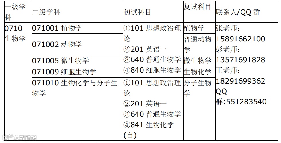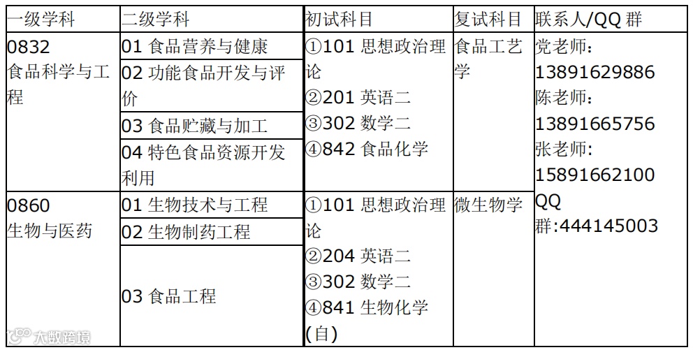 生物学(0710)、食品科学与工程(0832)、生物与医药(0860)均接收调剂。