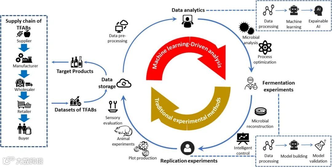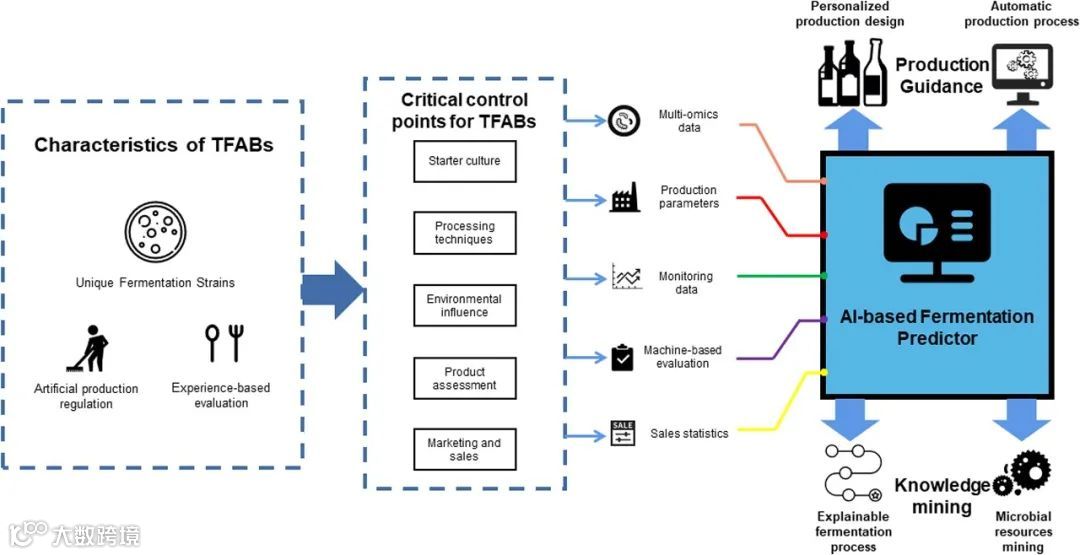 基于人工智能的方法为优化和自动化 TFAB 的生产和营销流程提供了机会。在这篇综述中,作者进行了系统的努力来审视将机器学习方法应用于 TFAB 研究的好处和潜力。该研究还提出了智能控制发酵系统的框架。据观察,机器学习方法已应用于生产和营销以提供决策支持。尽管这些尝试在 TFAB 中是创新的,但在其他领域也可以找到类似的应用。该文还提出了与传统发酵过程特征相对应的三种潜在应用,以开发独特的 TFAB 产品。多组学和物联网创建的海量数据将在这些应用程序中得到充分利用。发酵过程的智能控制是TFABs产业化的主要目标之一,同时代谢机制和微生物相互作用的多组学分析是TFABs研究的最大挑战之一。这项研究建议将人工智能方法作为这些问题的解决方案。它有望通过采用机器学习方法对发酵过程的定向调控策略进行深入探索。