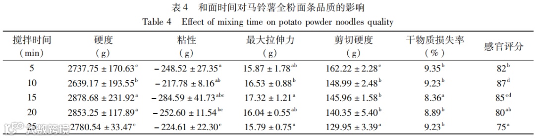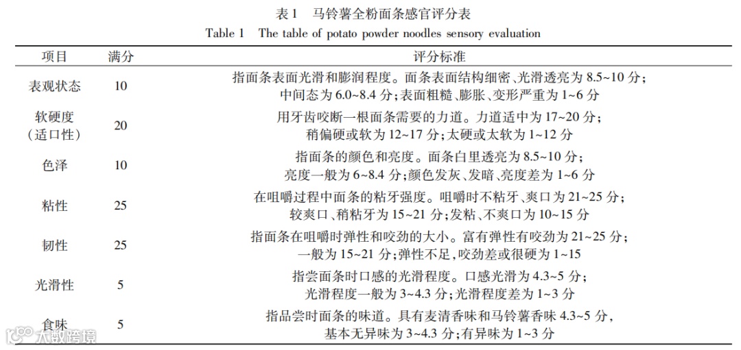 加工工艺对马铃薯全粉面条品质影响的研究