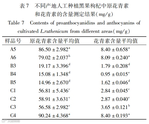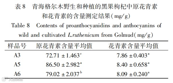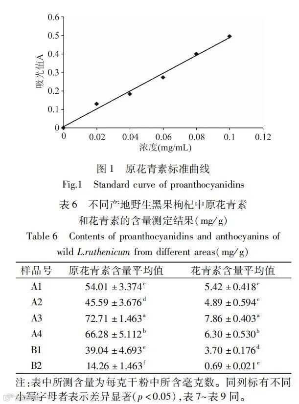 不同产地黑果枸杞中原花青素和花青素含量研究