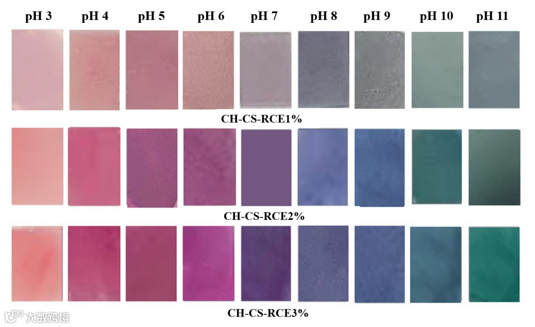 图6. CH-CS-RCE膜在不同pH缓冲溶液中的颜色响应