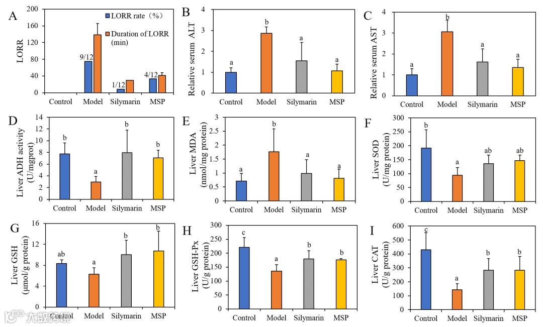 图1 海瓜子肽摄入对酒精性肝损伤小鼠的保护作用评价