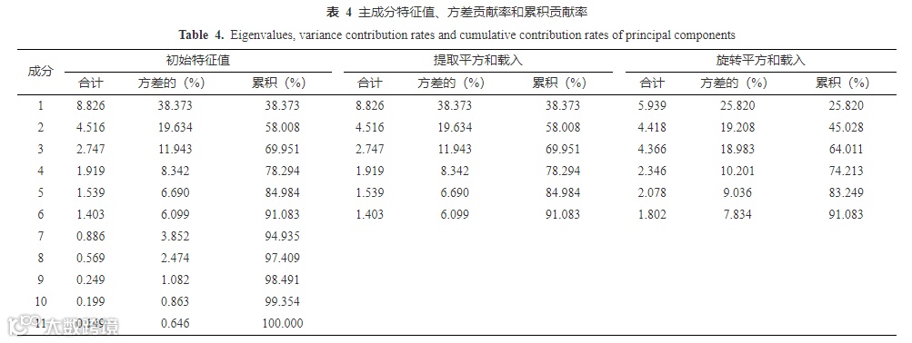 由表6可知,根据表6的因子得分系数矩阵及其所对应的主成分,可以计算出个主成分因子得分,公式如下所示: