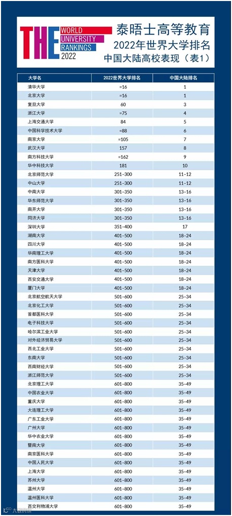 北京时间2021年9月2日早上7点,泰晤士高等教育准时发布2022年度世界大学排名!中国高校中清华大学和北京大学并列世界排名第16位,8所高校首次上榜。