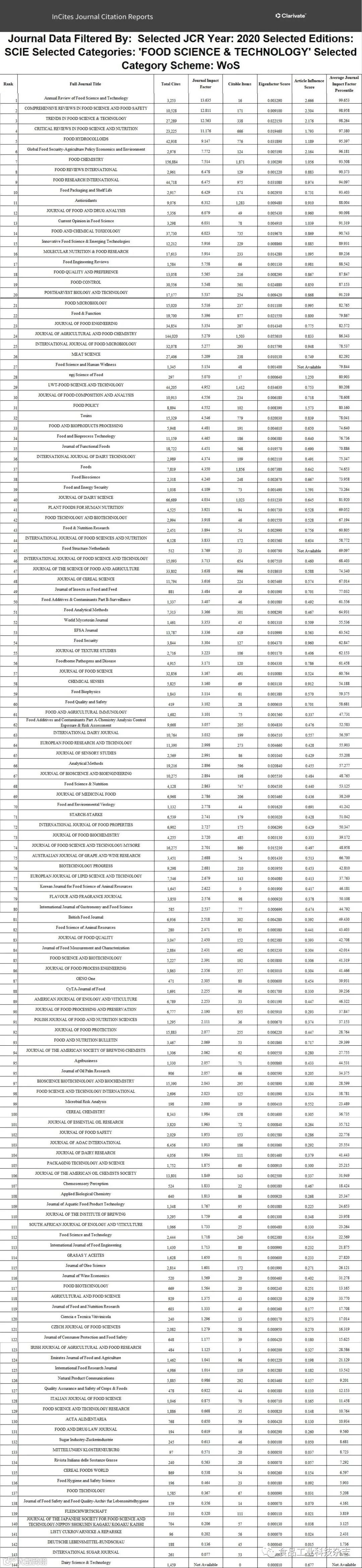 以下为其中144本食品科学与技术类SCI期刊的影响因子列表,方便大家投稿时作为参考。