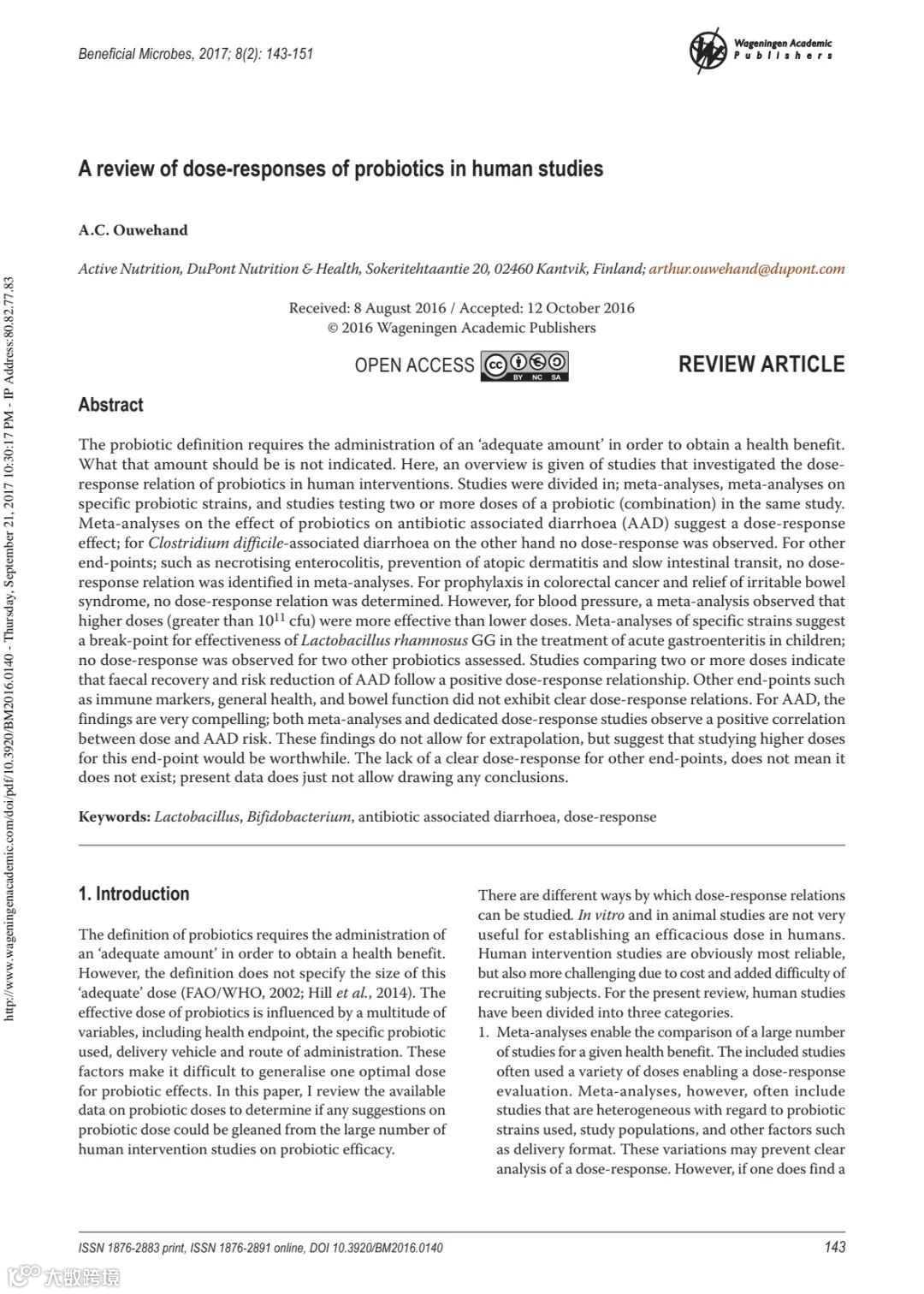 赵欣:而究竟菌数的高低与其功效性有没有呈现剂量效应呢?2017年发表在科学期刊Beneficial Microbes的回顾性研究指出,针对抗生素相关性腹泻,益生菌的菌数确实呈现剂量效应,但针对梭状杆菌腹泻则没有此效应存在,而另一篇meta-analysis的研究指出高剂量,该篇是指超过千亿以上的菌数,对于血压的改善效果比低剂量更好,另外也发现常见的LGG鼠李糖乳杆菌在治疗小孩的急性肠胃炎上也有呈现剂量效应,而刚刚所提到的回顾性研究就在最后的结论也明确指出,虽然还没有研究证实有些菌种可以呈现剂量反应,但并不代表这种可能性就不存在,甚至值得我们透过更多的研究去找出更多的菌种对不同的疾病或症状改善上所存在的剂量效应。