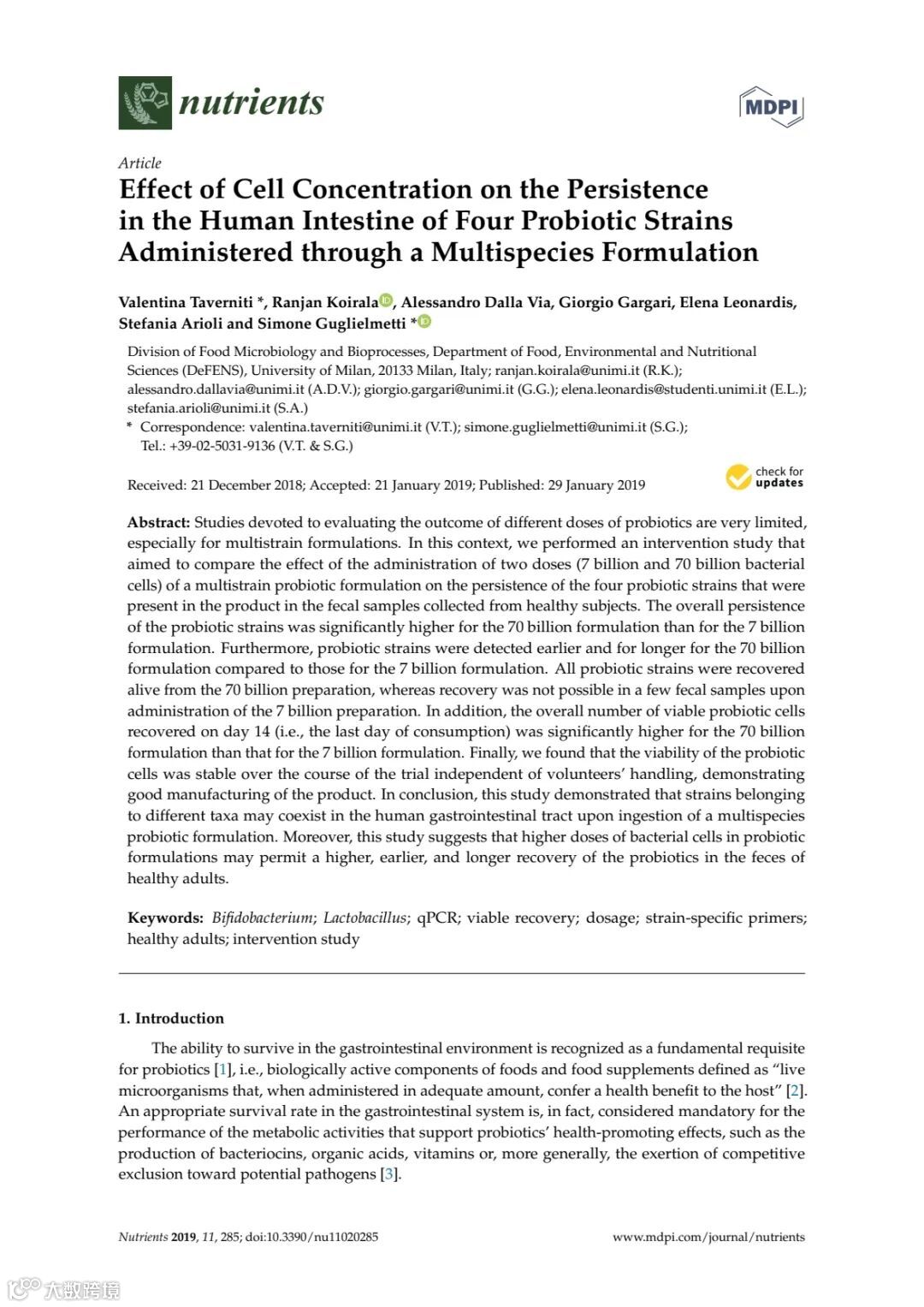 Taverniti et al.Nutrients 11(2):285, 2019