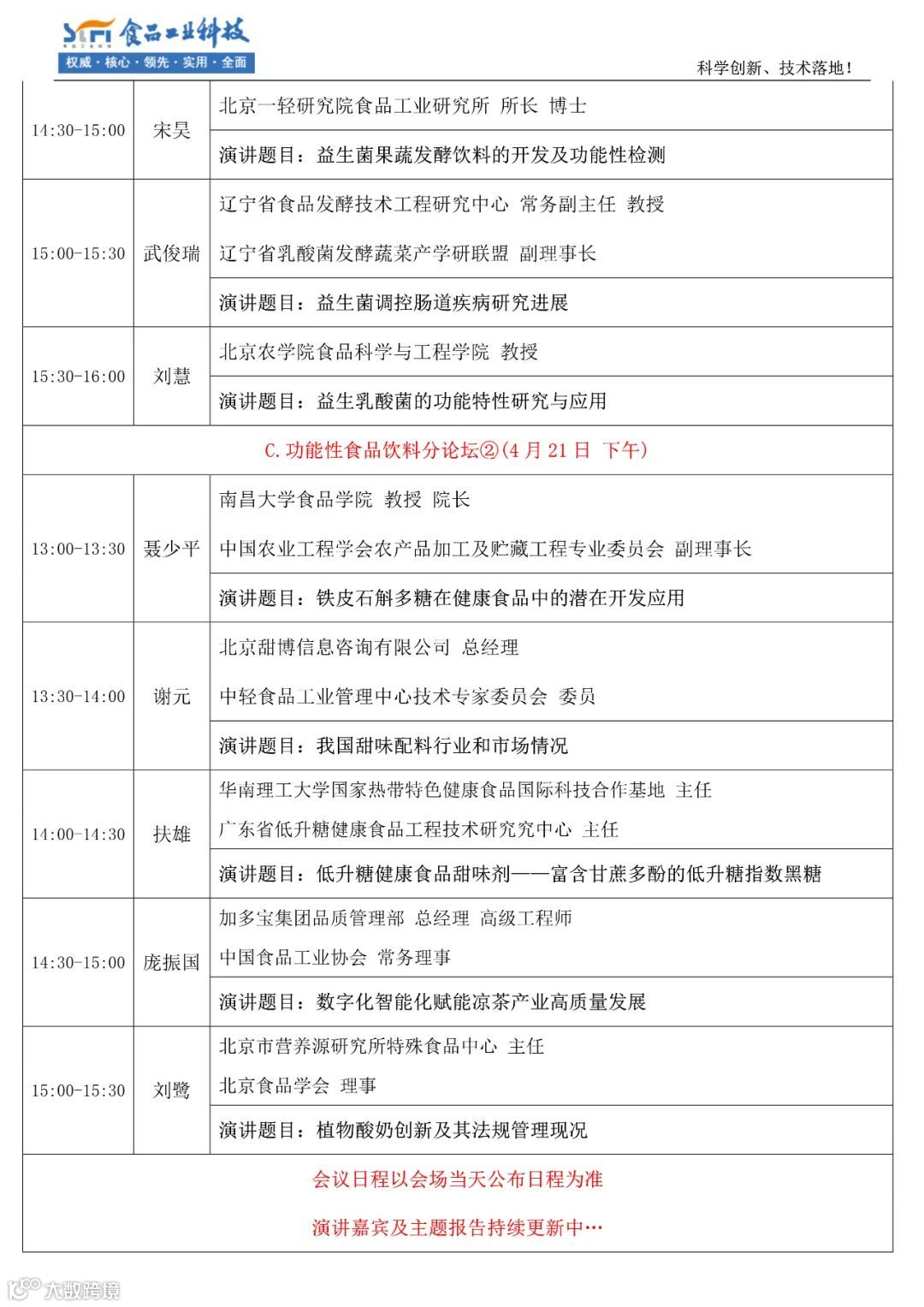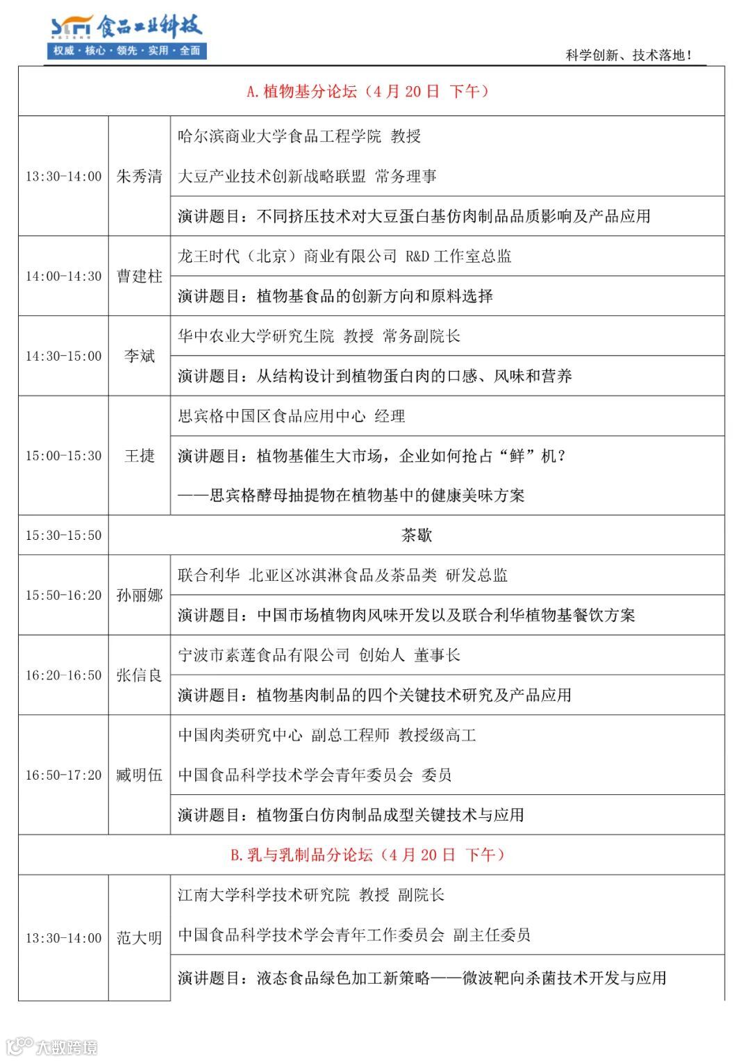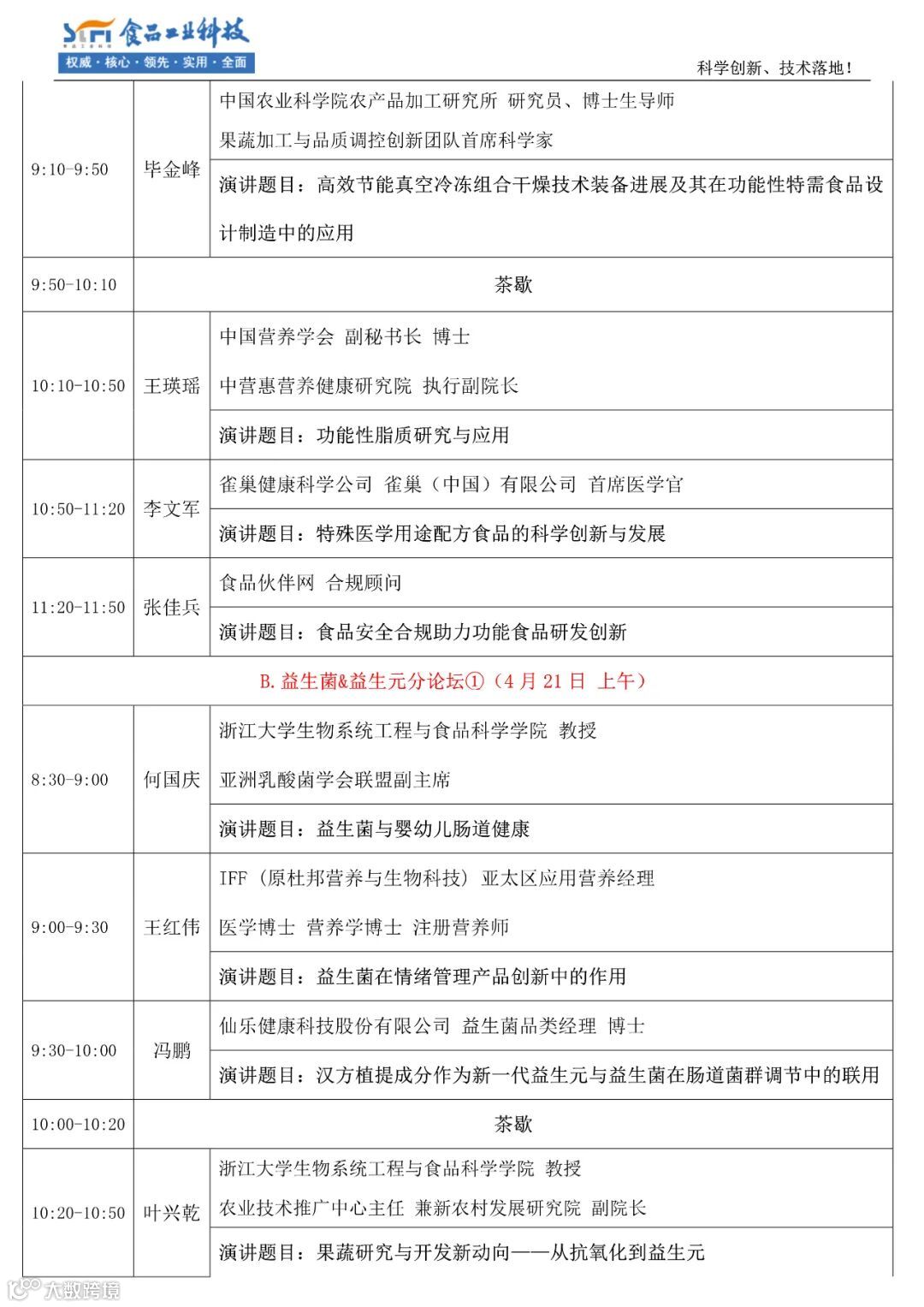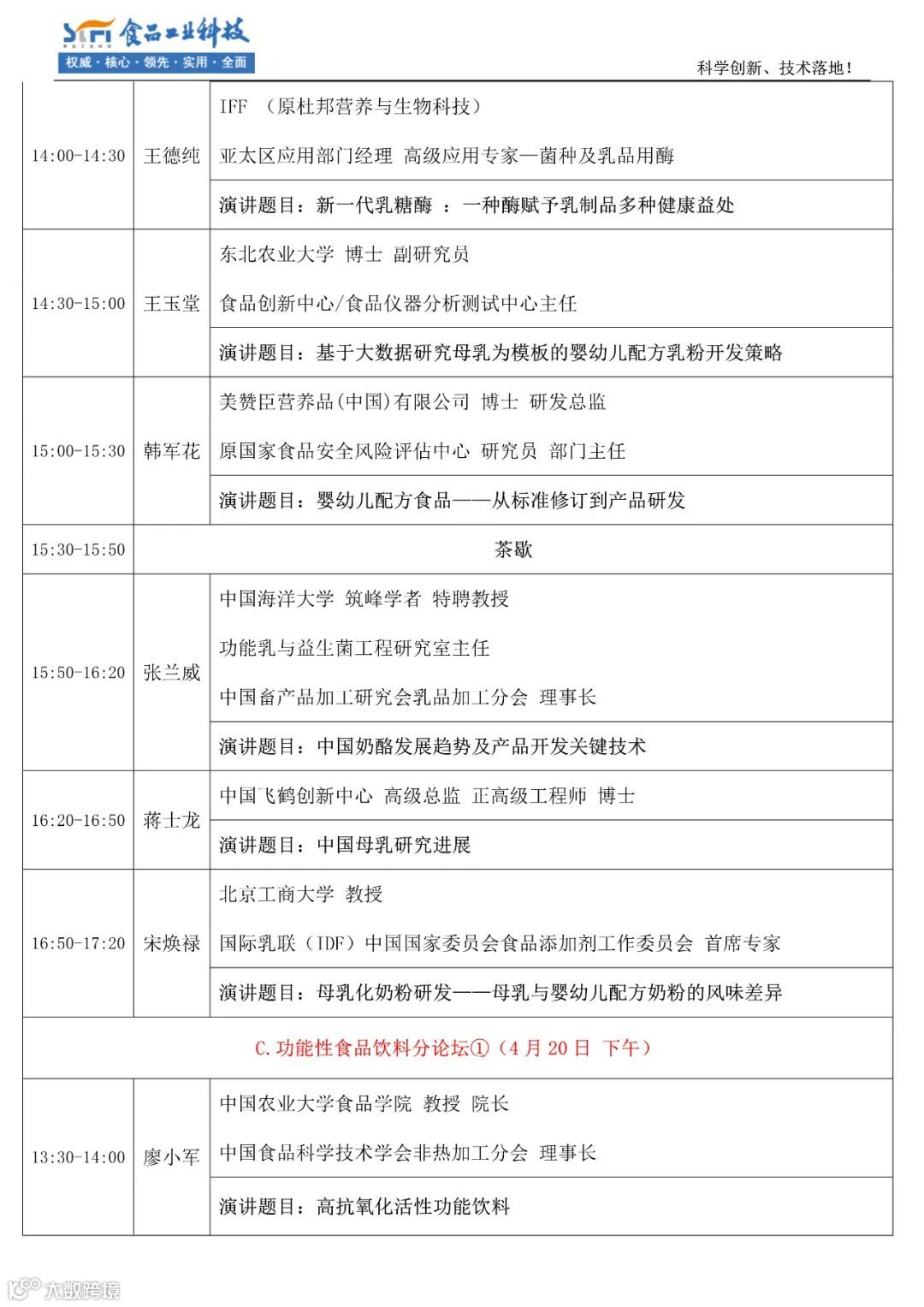 听众构成:60%-70%为食品企业的研发与管理人员、10%-15%为高校、科研机构的教授、专家,是一个名副其实的科学创新、技术落地的论坛。