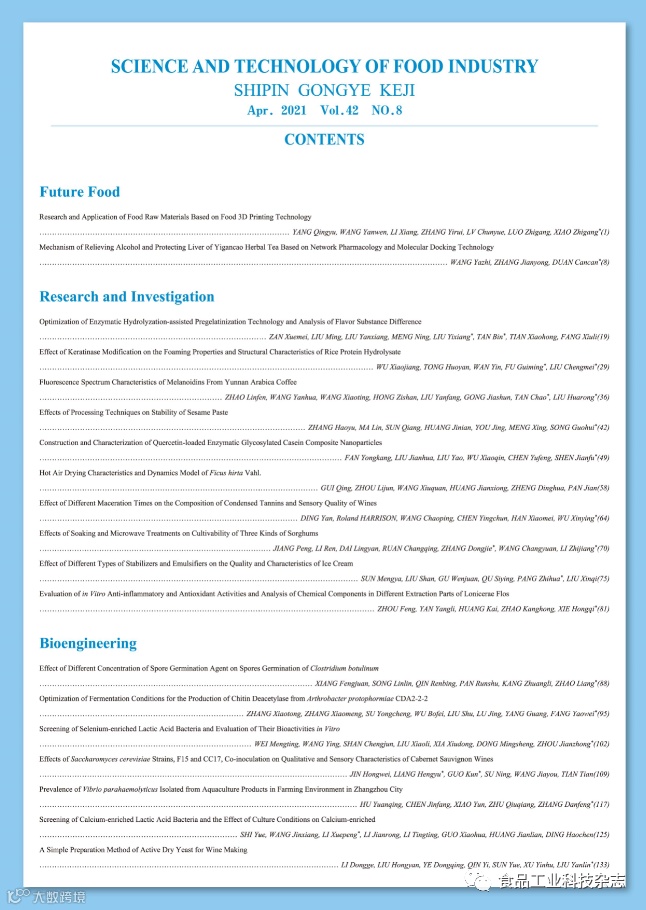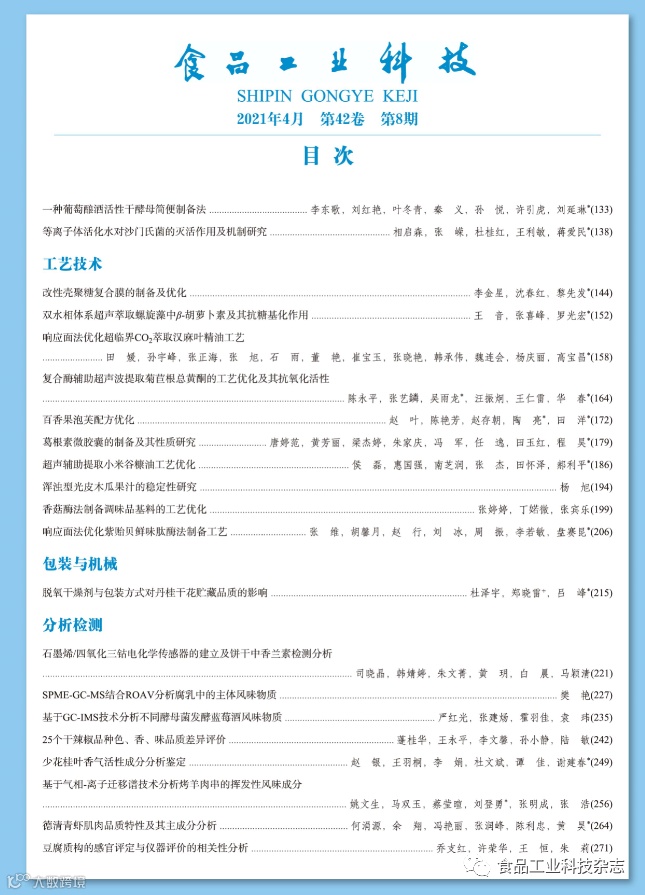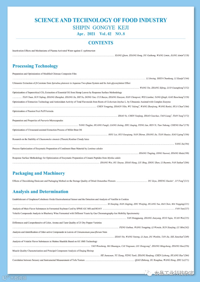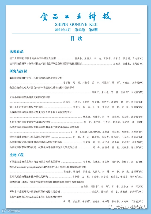 《食品工业科技》官网及微信公众号免费OA阅览。