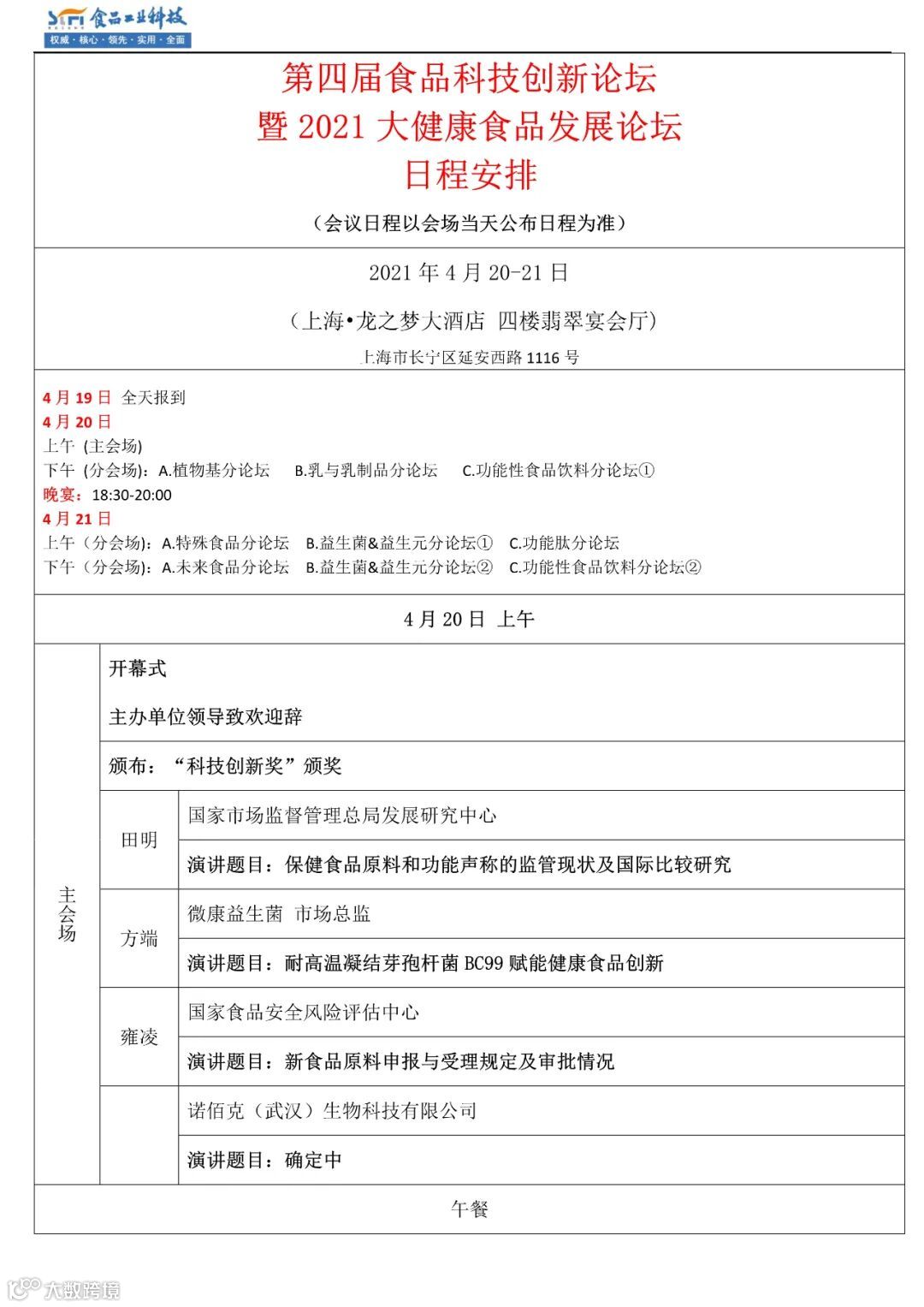 会议日程以会场当天公布日程为准