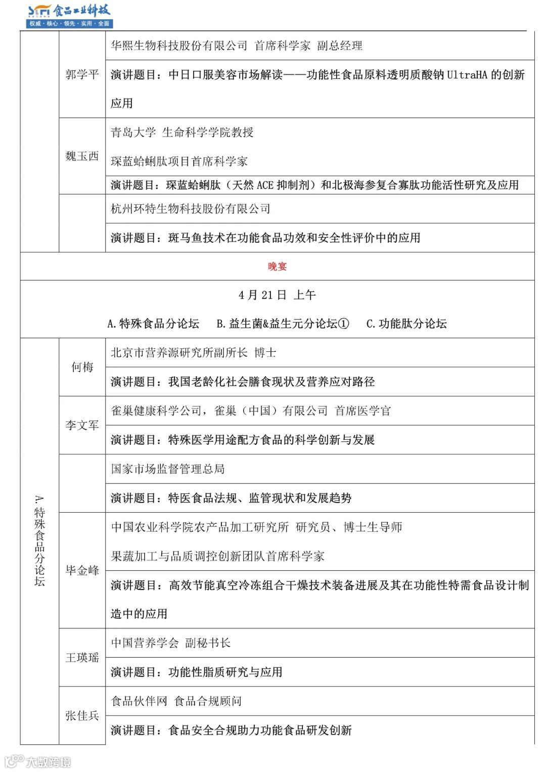 特邀嘉宾:60多位各食品分支行业顶尖专家