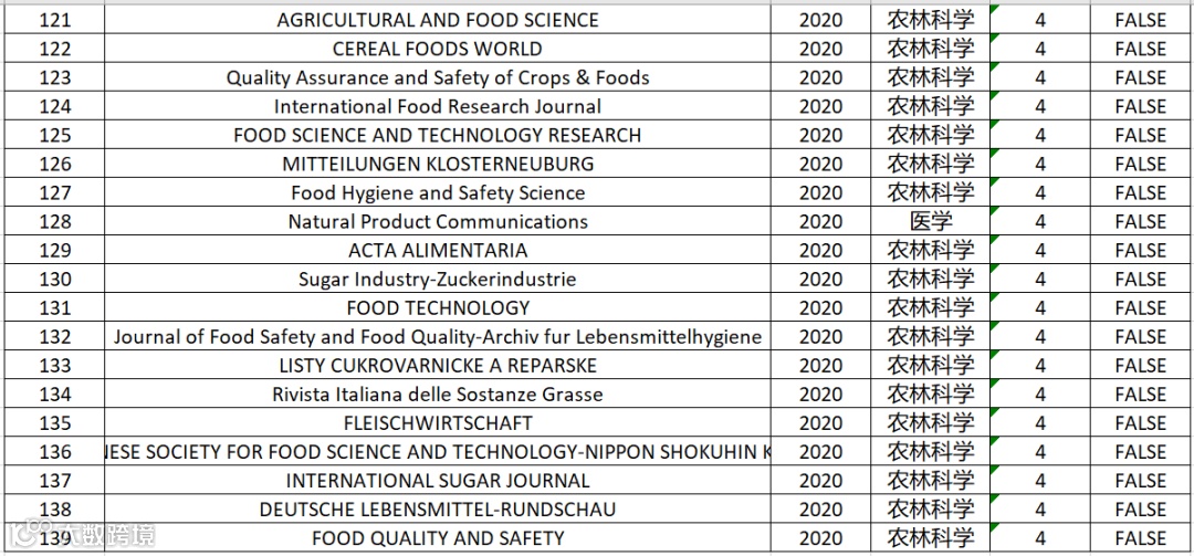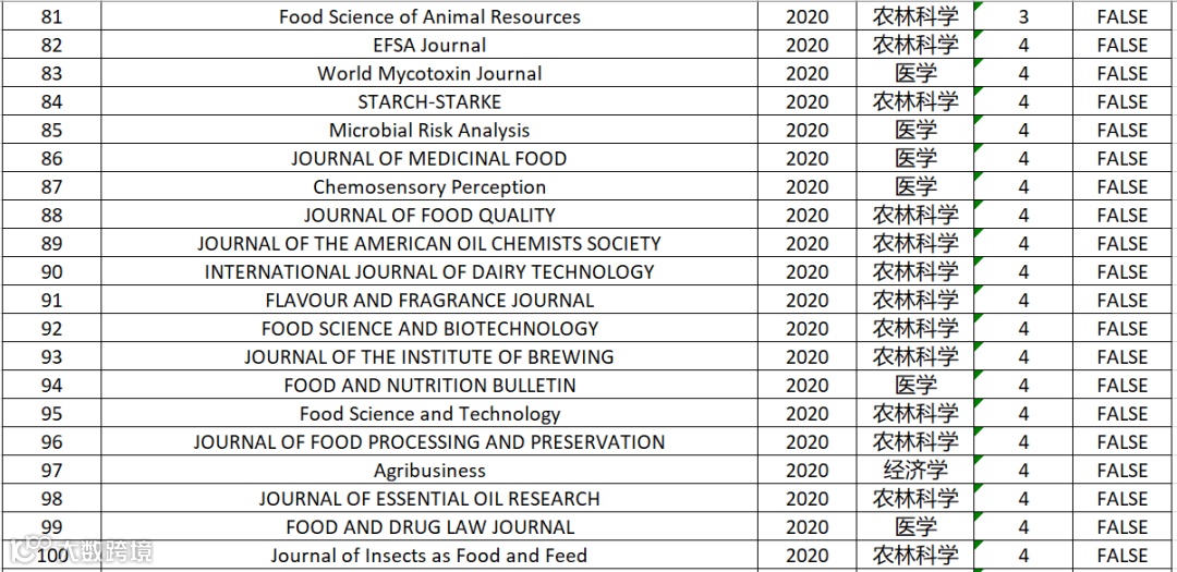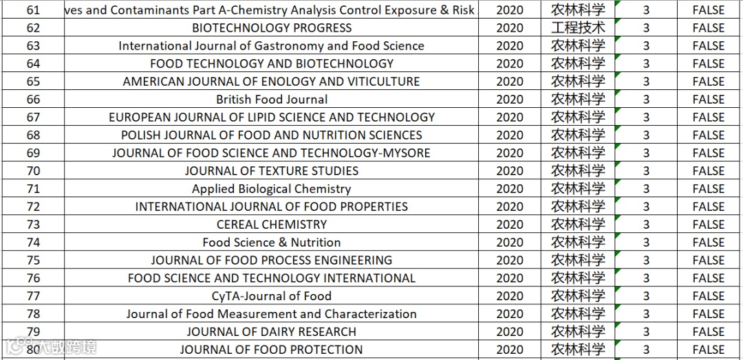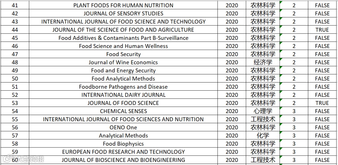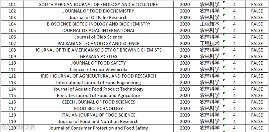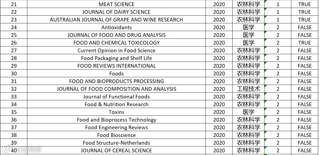 食品科技|2020年中科院分区表最新大类分区