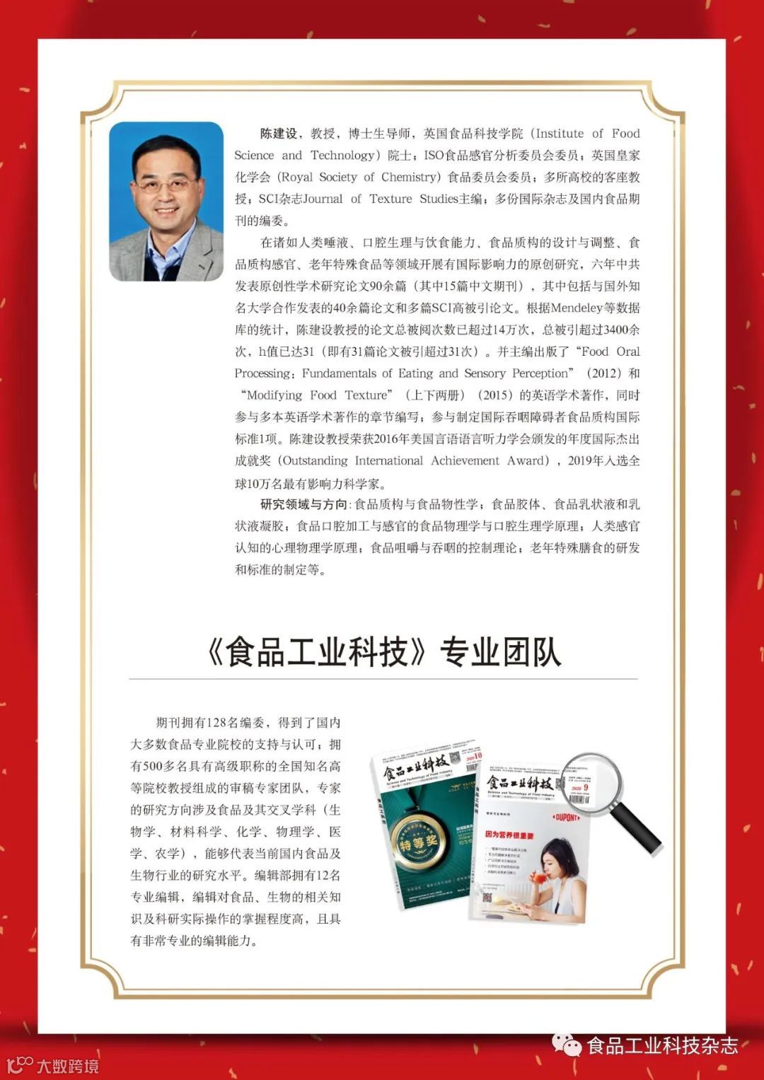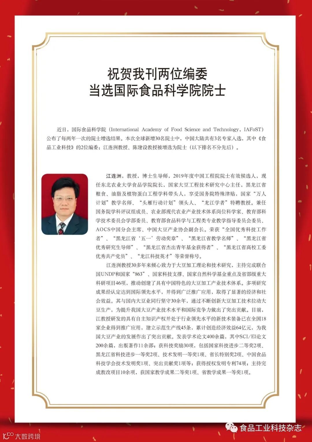 2020年13期特殊版位:祝贺我刊两位编委当选国际食品科学院院士!