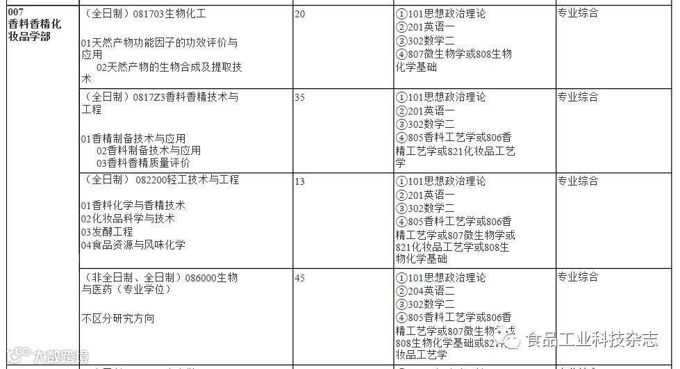 2021年食品专业调剂信息汇总(二十二)上海应用技术大学