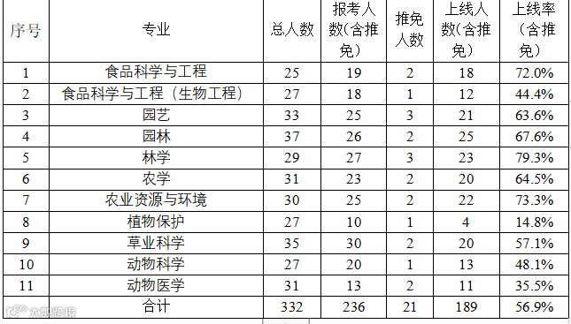 农学院2020届考研上线人数统计