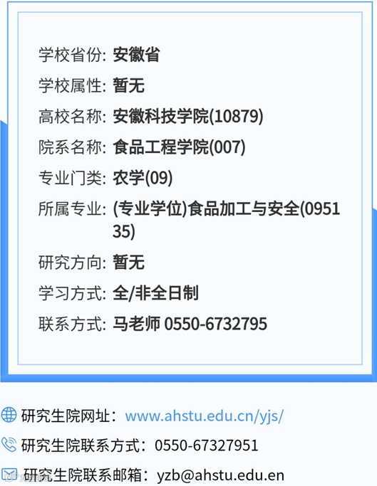 食品专业调剂信息汇总(八十三)安徽科技学院