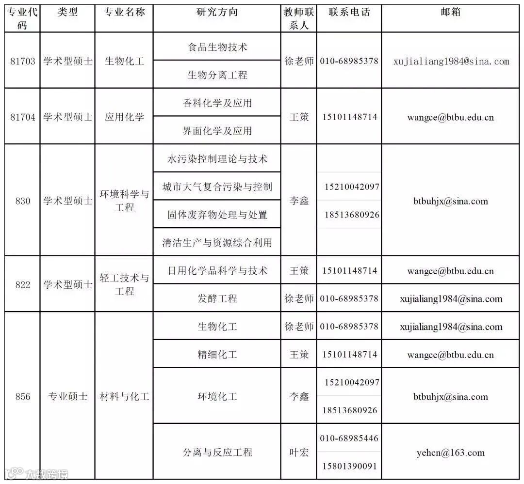 食品专业调剂信息汇总(一)北京工商大学轻工科学技术学院