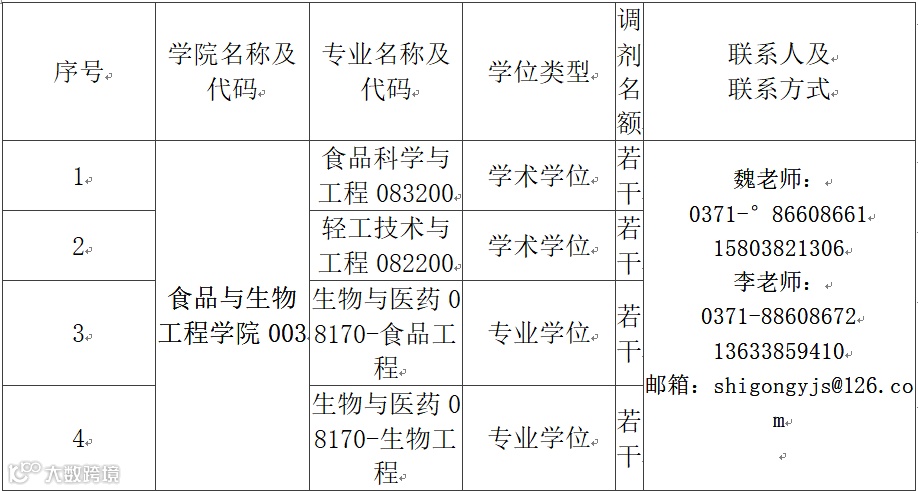 食品专业调剂信息汇总(六十三)郑州轻工业大学
