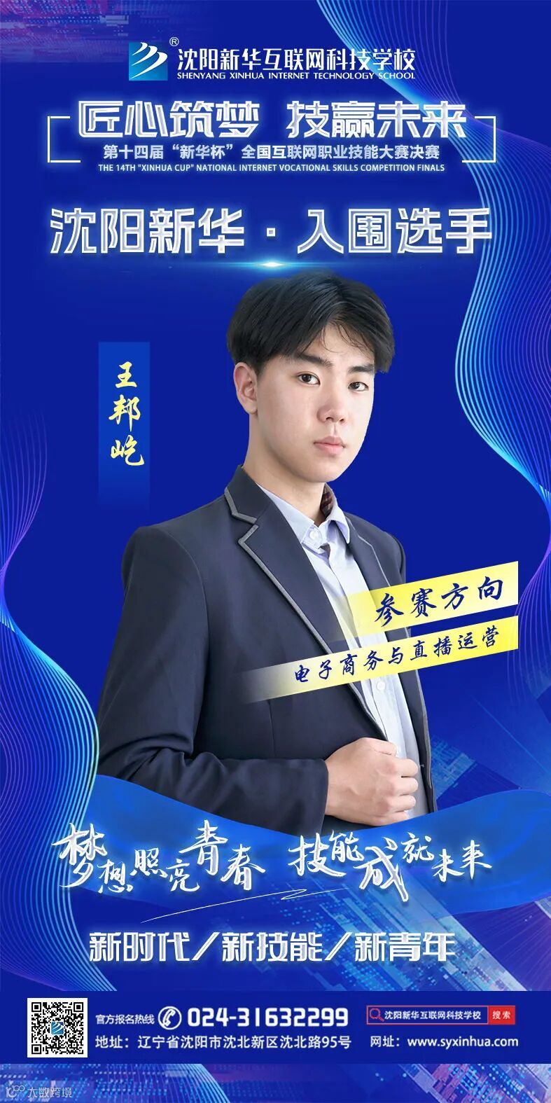 期待他能够在比赛中发挥出最强实力,也预祝他取得好成绩,为自己为沈阳新华互联网科技学校争光!