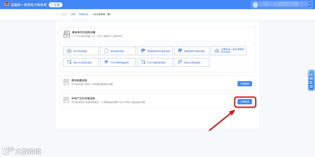 对于错误申报内容进行更正申报后,符合退税条件需要办理退税的,纳税人可点击【我要办税】-【一般退税管理】-【一站式退抵税(费)】,点击【申报产生的多缴退税】进行办理。