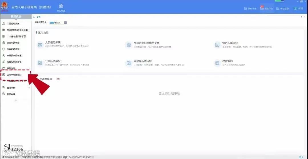 登录扣缴端后,在“代扣代缴”界面,点击左侧菜单【退付手续费核对】。
