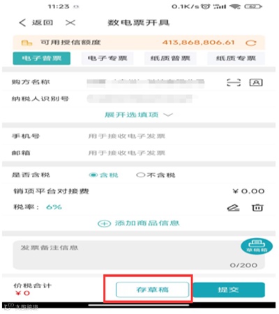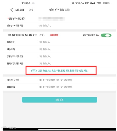 8.百旺金穗云app:税控/数电发票开具支持存草稿功能,客户管理支持维护多地址电话及银行账号功能。