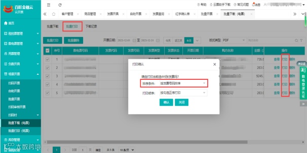 9.发票批量打印:支持设置a4横版打印和按开票日期/发票号码排序打印。