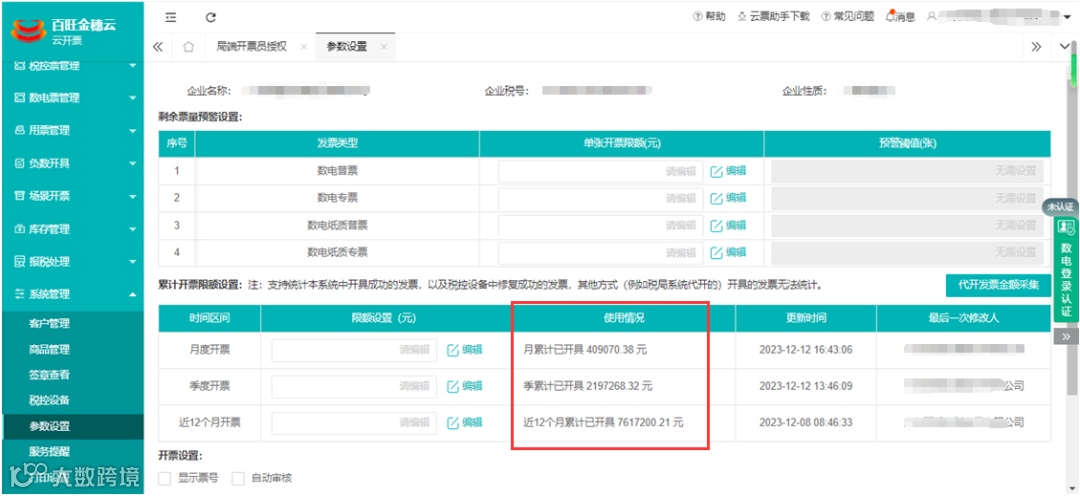 14.参数设置:累计限额提示调整,累计金额包含开票中订单金额。