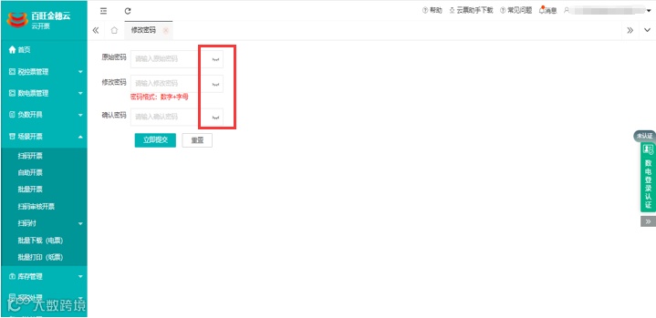 10.问题优化:修改密码界面密码可查看明文、数电票开具/复制界面支持手工输入收款、复核人等。