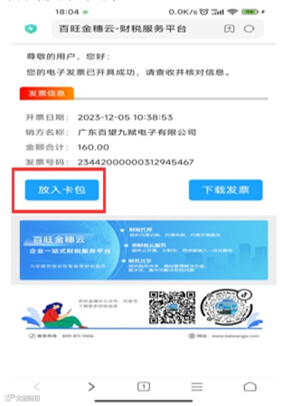 2.数电票交付:数电票短信交付增加放入卡包按钮支持微信存卡包,PDF、OFD、XML下载合并为发票下载。