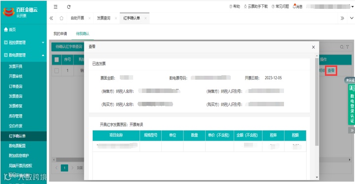 7.红字确认单:待我确认 - 支持获取查看购方申请确认单明细功能。