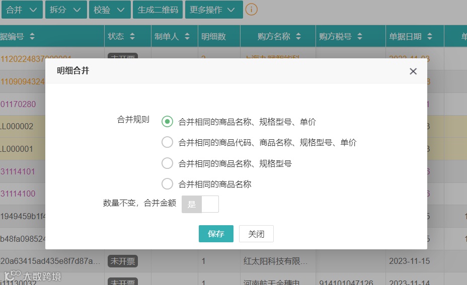 1.支持对单据、单据明细进行合并处理;