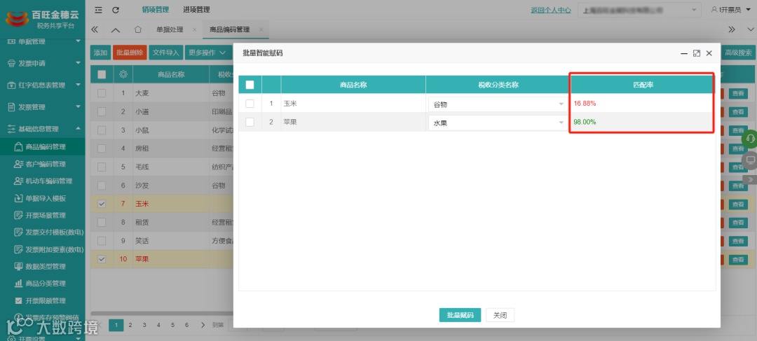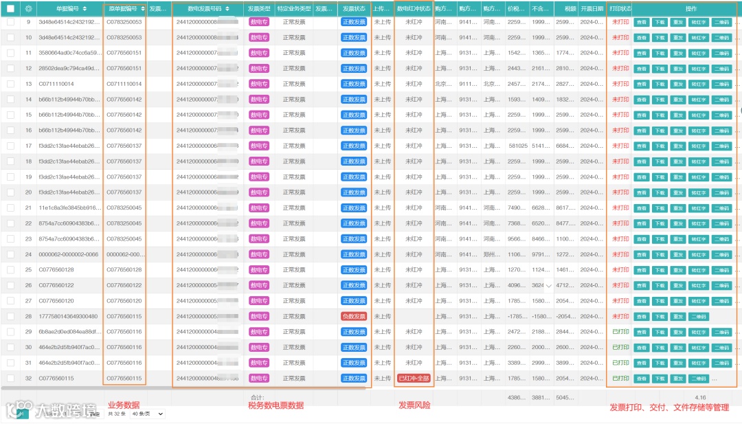 销项发票结构化数据、版式、影像数据统一管理;