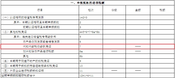 答:按照从税务机关或者扣缴义务人取得的代扣代缴税款的完税凭证上注明的增值税额进行申报抵扣。(填写在《增值税及附加税费申报表附列资料(二)》第7行)。