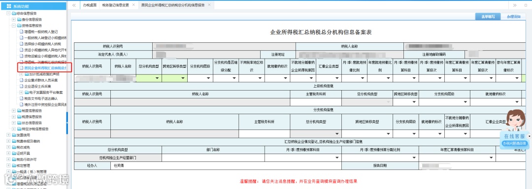 模块路径:我要办税--综合信息报告--资格信息报告--居民企业所得税汇总纳税总分机构信息报告