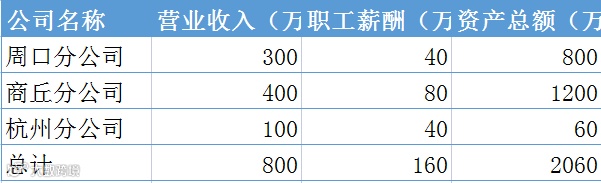 周口分公司=100×0.34=34万元;